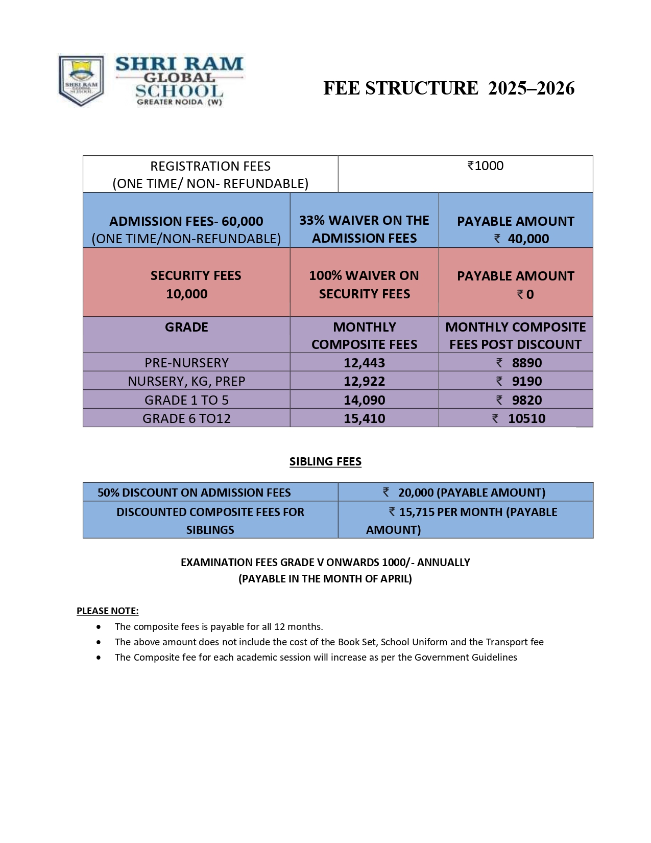 Fees Structure Previous Year 2025
